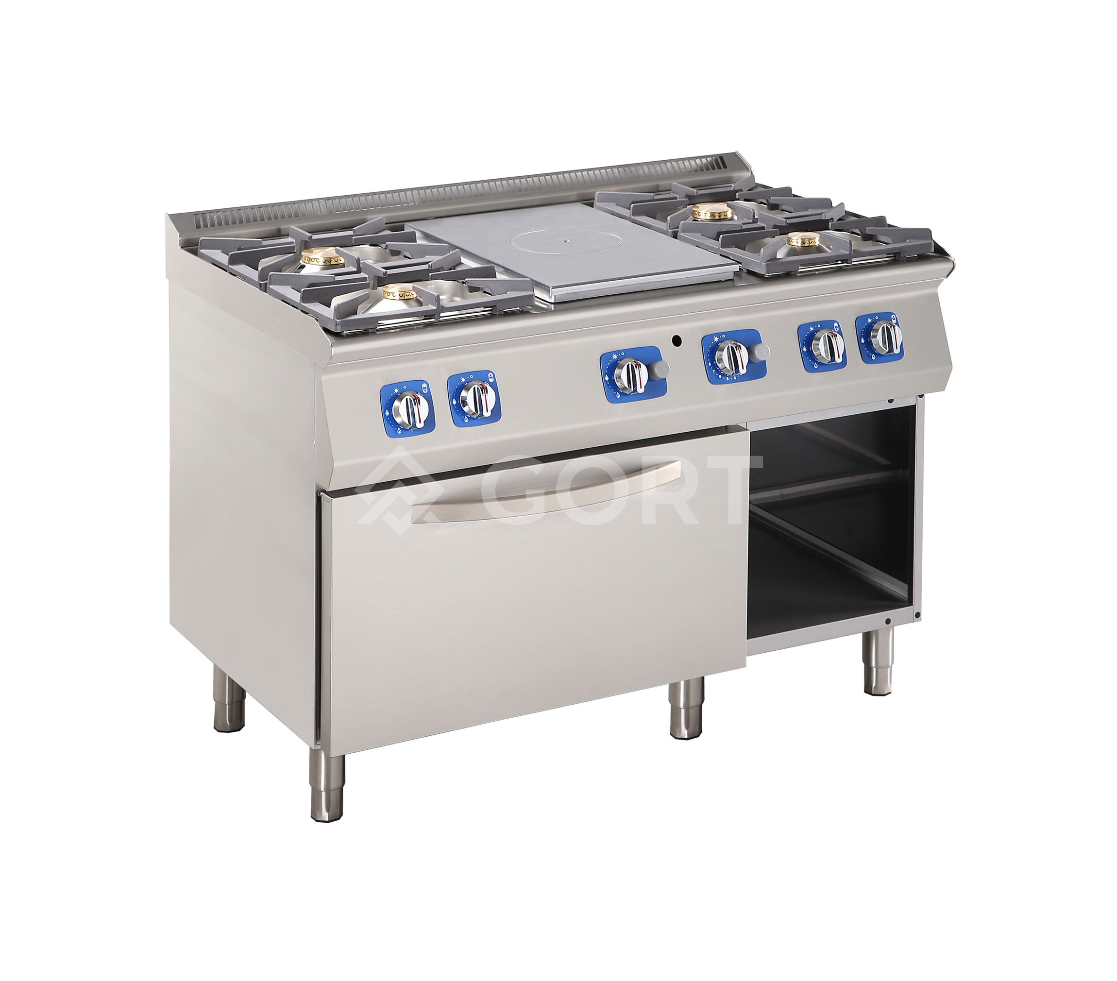 Wszystkie modele urządzeń z LINII 700 GORT są wykonane z najwyższą starannością z wysokiej jakości stali nierdzewnej i wyposażone w ergonomiczne pokrętła zapewniające płynne sterowanie mocą palników.